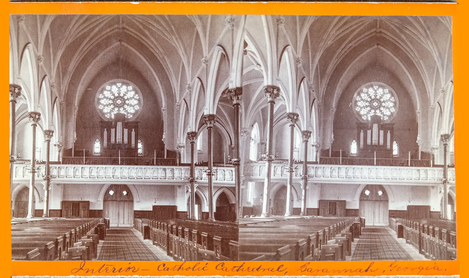 In 1850, the church became a cathedral when the new Diocese of Savannah was established. Then in 1856, a larger organ was desired and the Cathedral purchased the Goodrich organ built in 1820 for use by the Independent Presbyterian Church. This organ had been damaged in a hurricane in 1854. When Independent Presbyterian contracted with the Knauff Organ company for a new instrument, they sold the Goodrich to Mr. Knauff for $400. The organ was then rebuilt and sold to the Cathedral and eventually moved to the new building. The Goodrich continued in use until 1898 when it was destroyed in a fire.