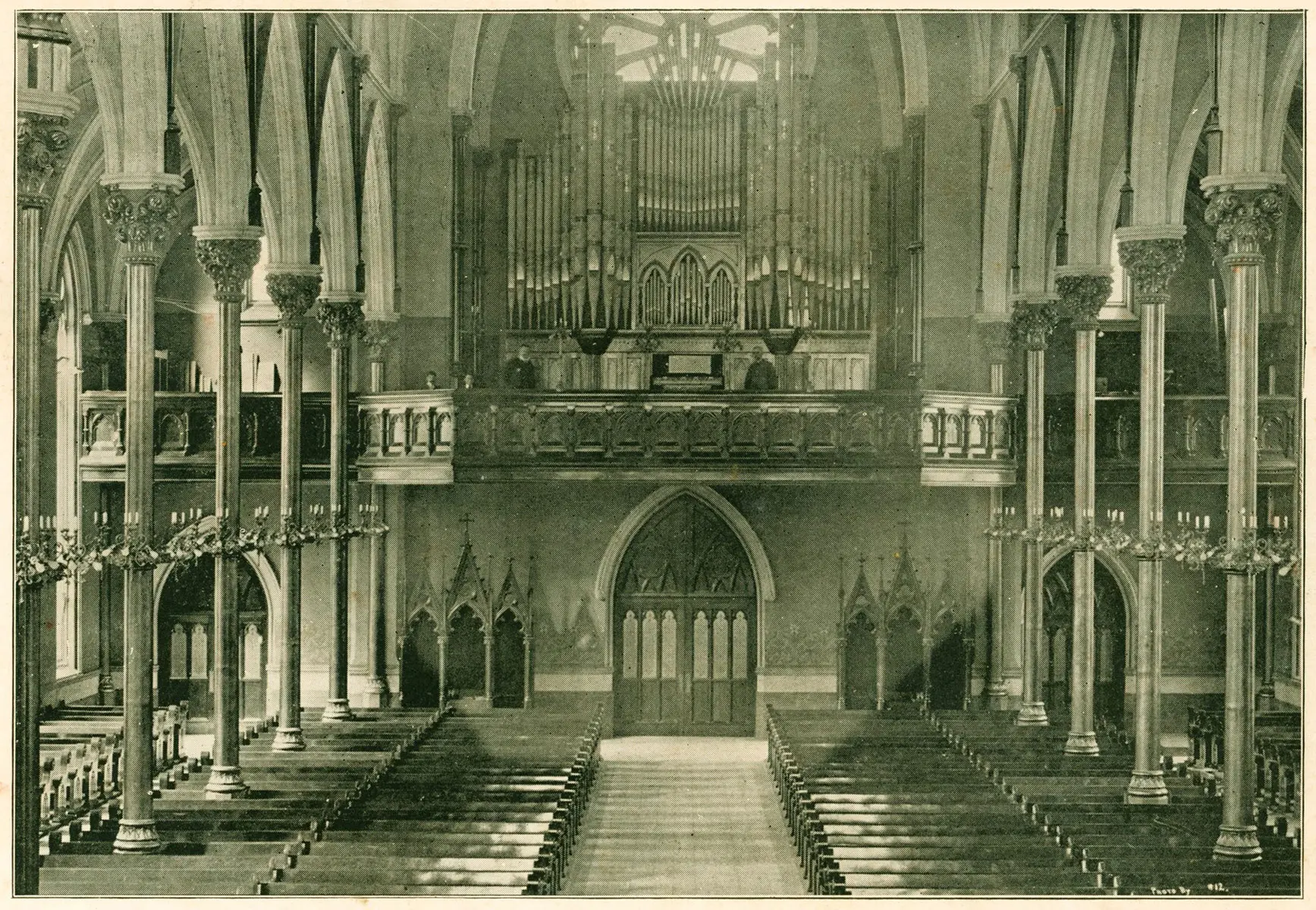The restored cathedral was dedicated on Sunday morning, October 28, 1900, complete with a new organ by John Brown. In 1912, the John Brown was converted to electric action and continued to be used until 1938, when it was considered unplayable and discarded.